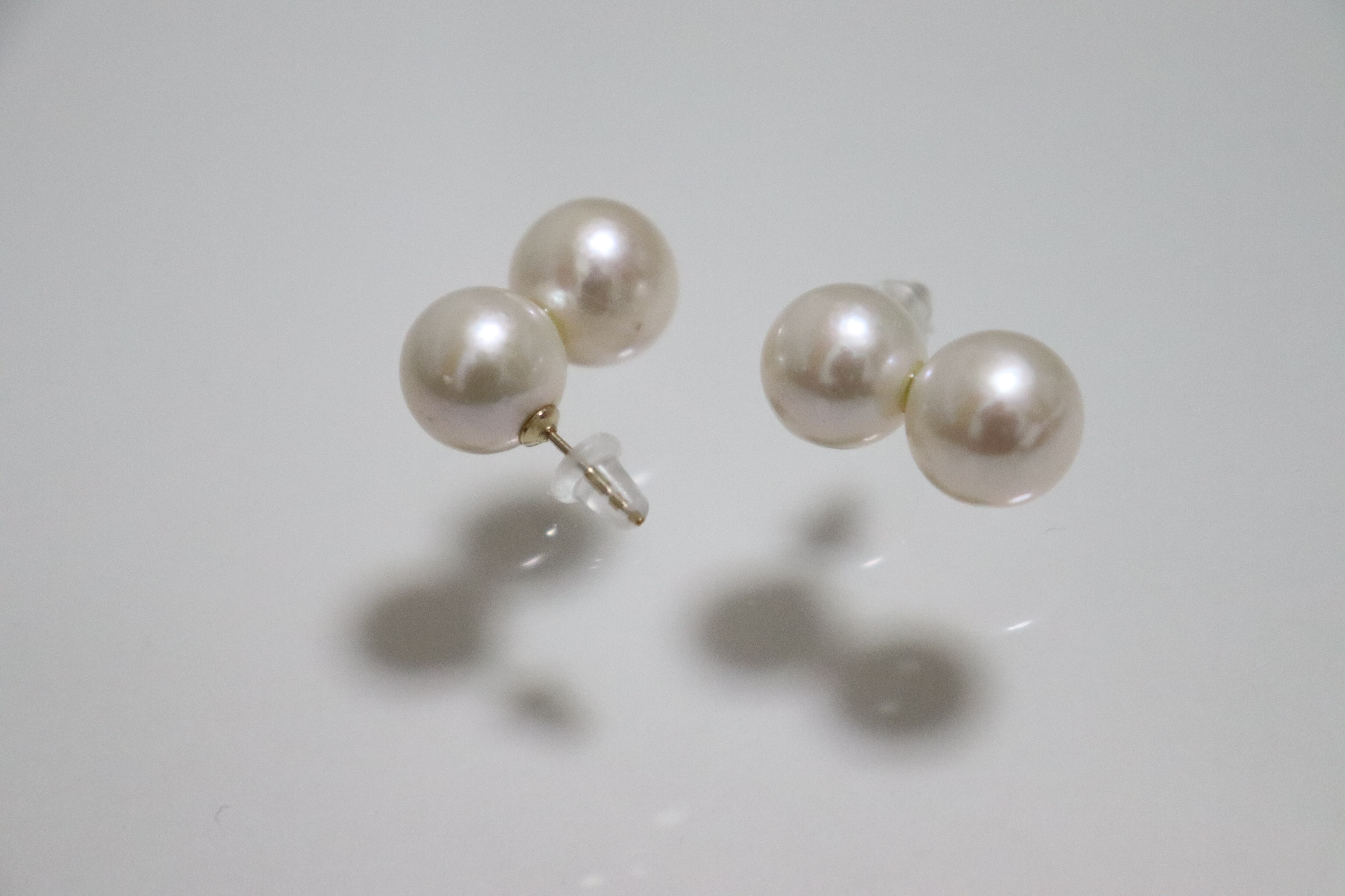 約10mm大の淡水パールを2つ付けた、可愛い印象のピアス。
