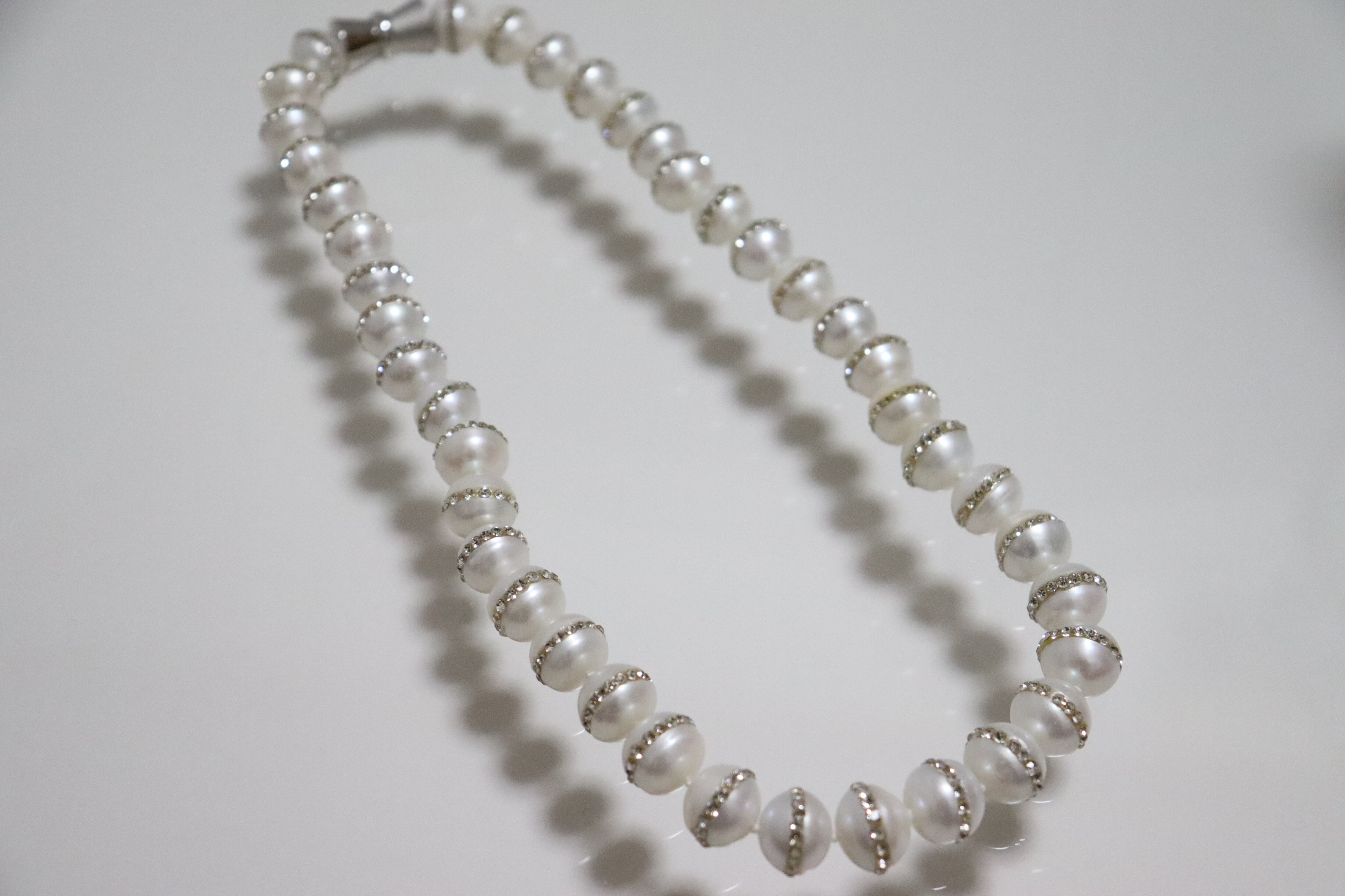 約11mmの淡水パールに、一周するように、キュービックが付いて華やかさがプラスされます。