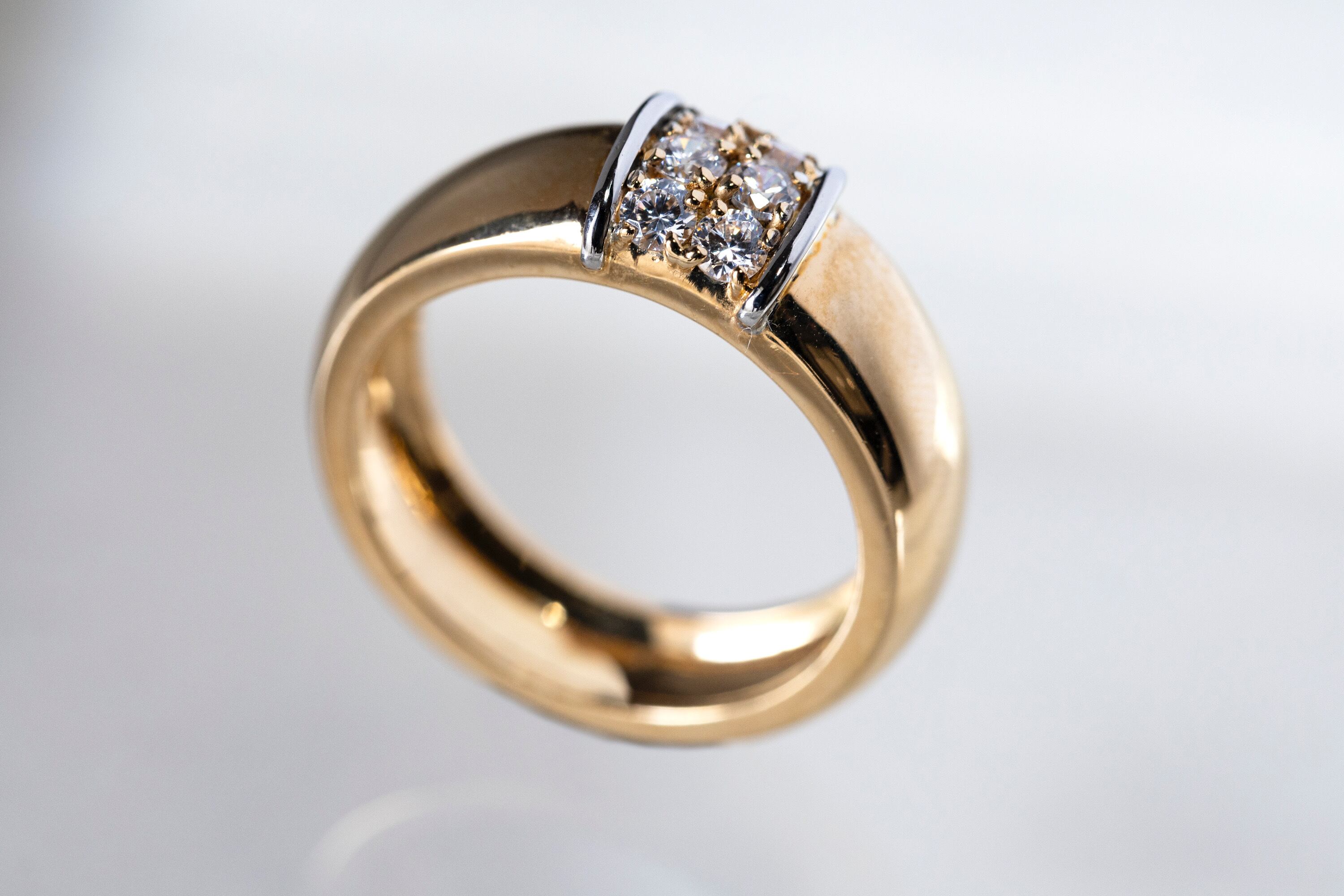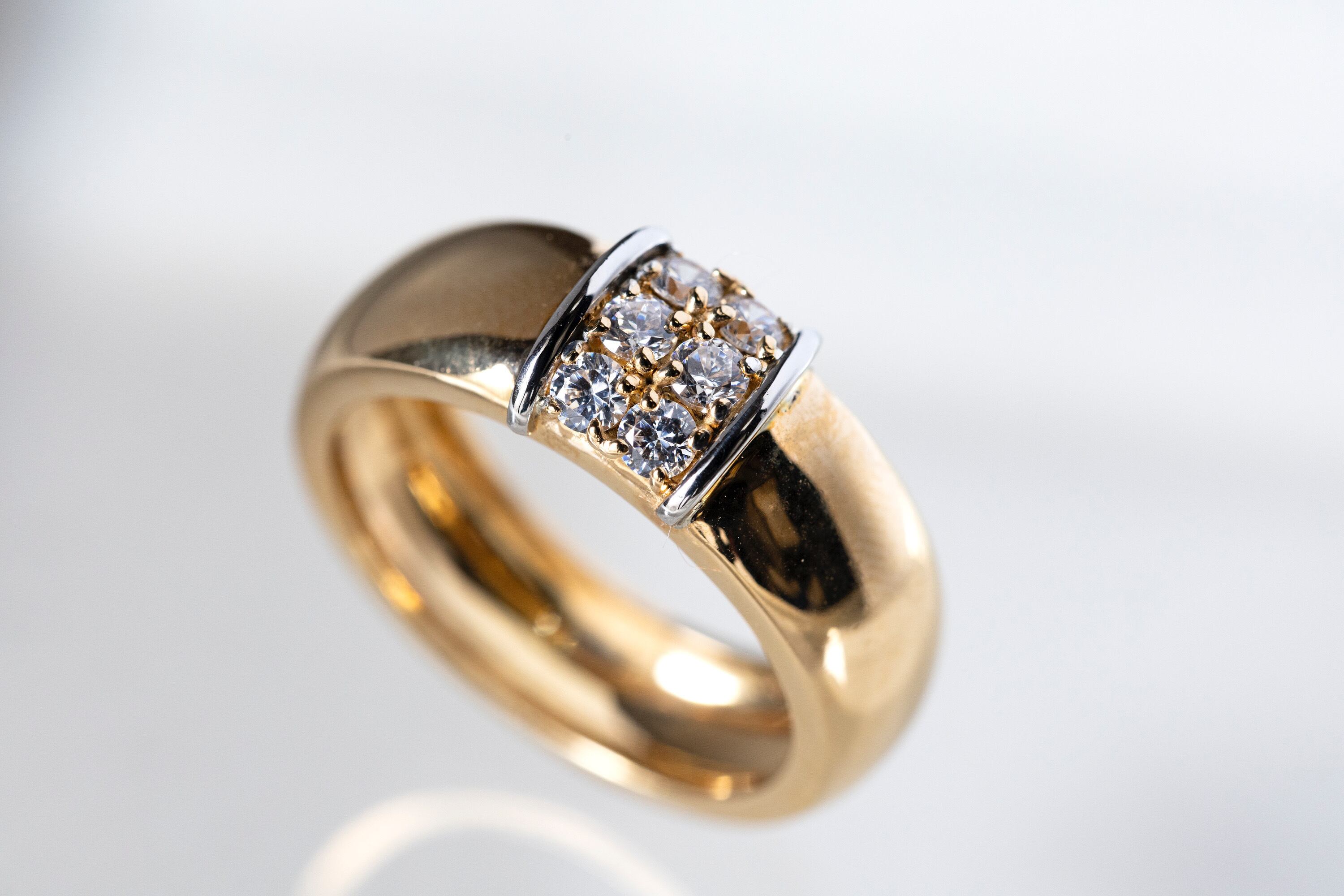 単純なデザインでありながらも中央のダイヤモンドと脇のプラチナがその存在感によって注目を集めます。