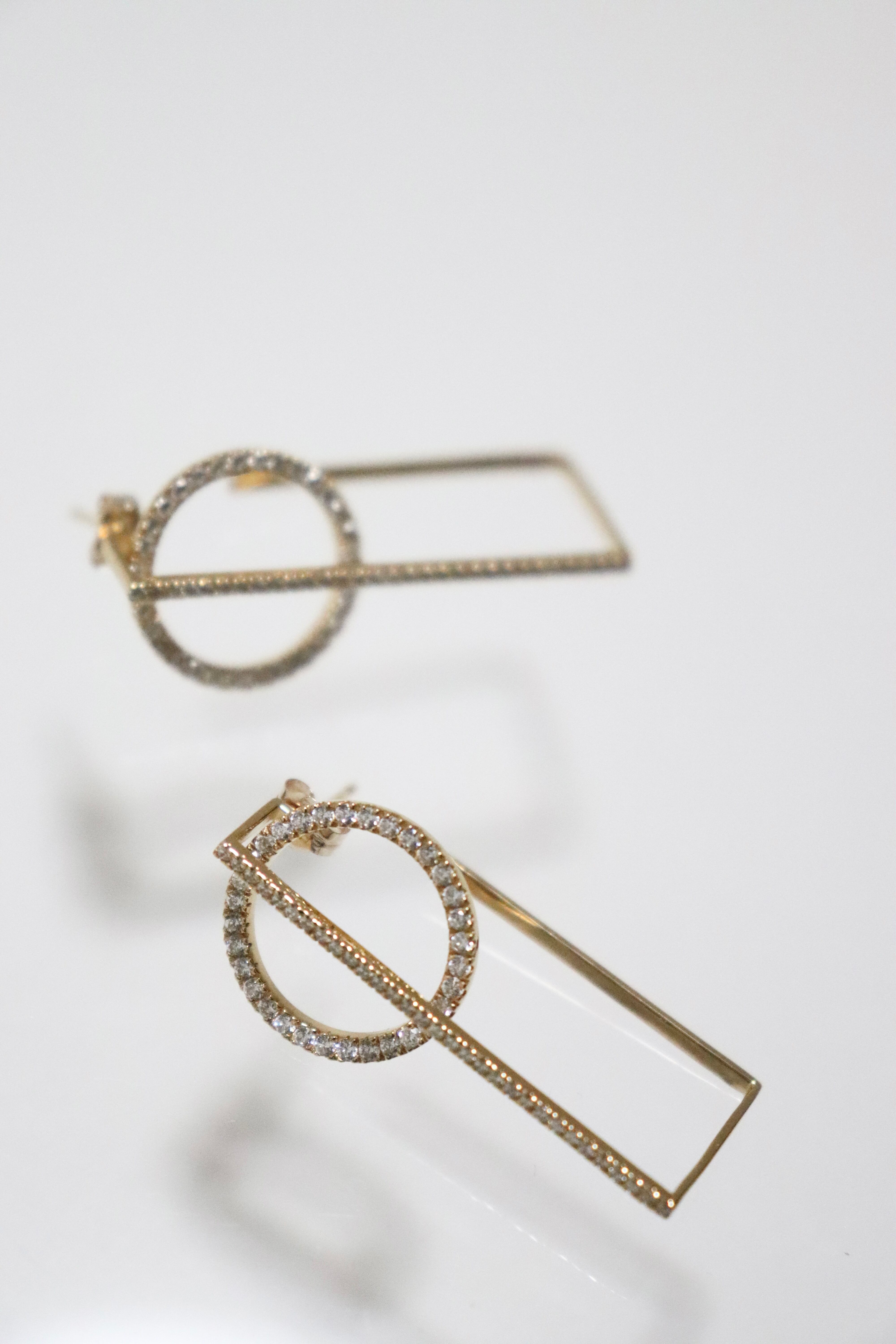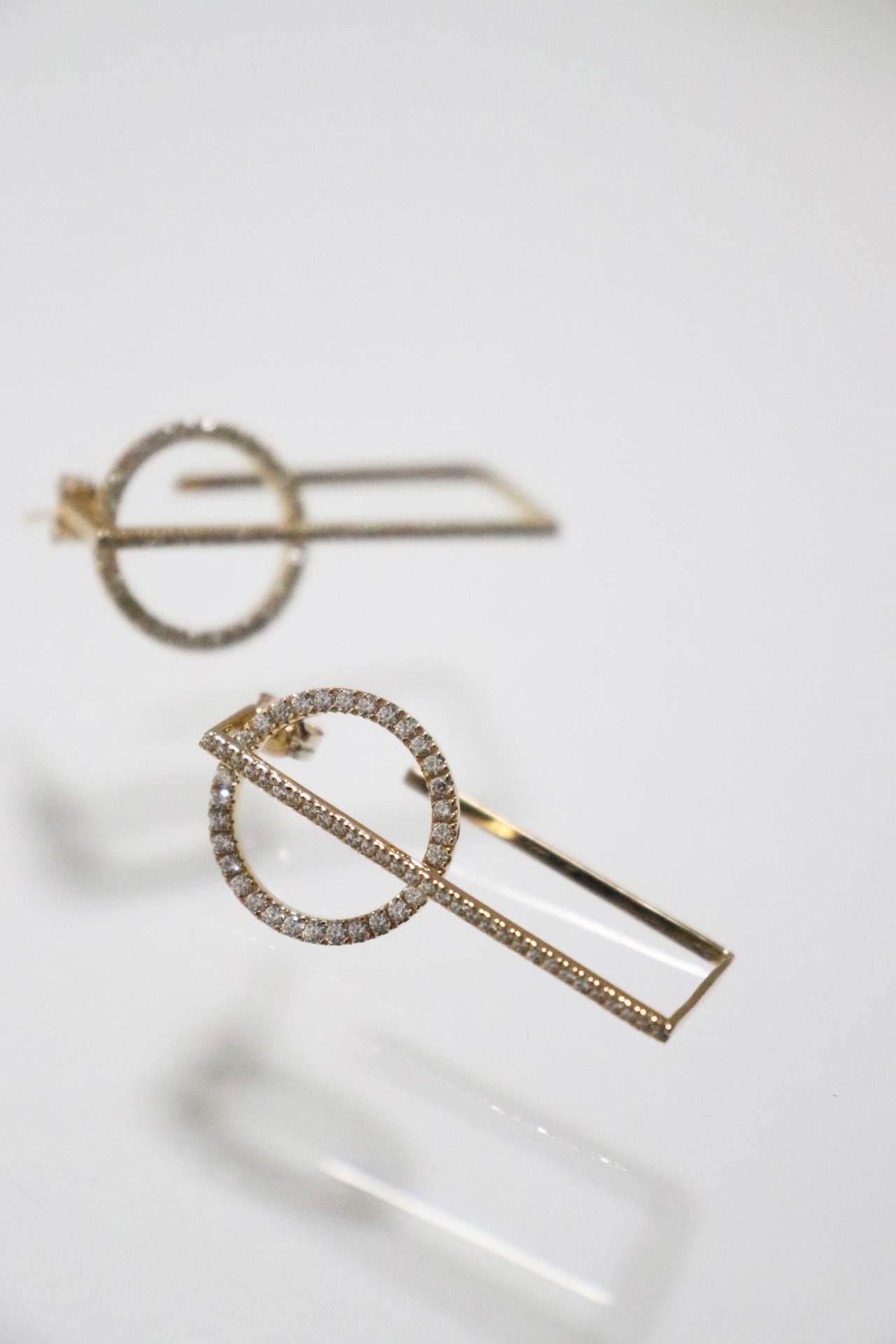 サークルと長方形の組み合わせが都会的なイメージになれるデザインのピアス。