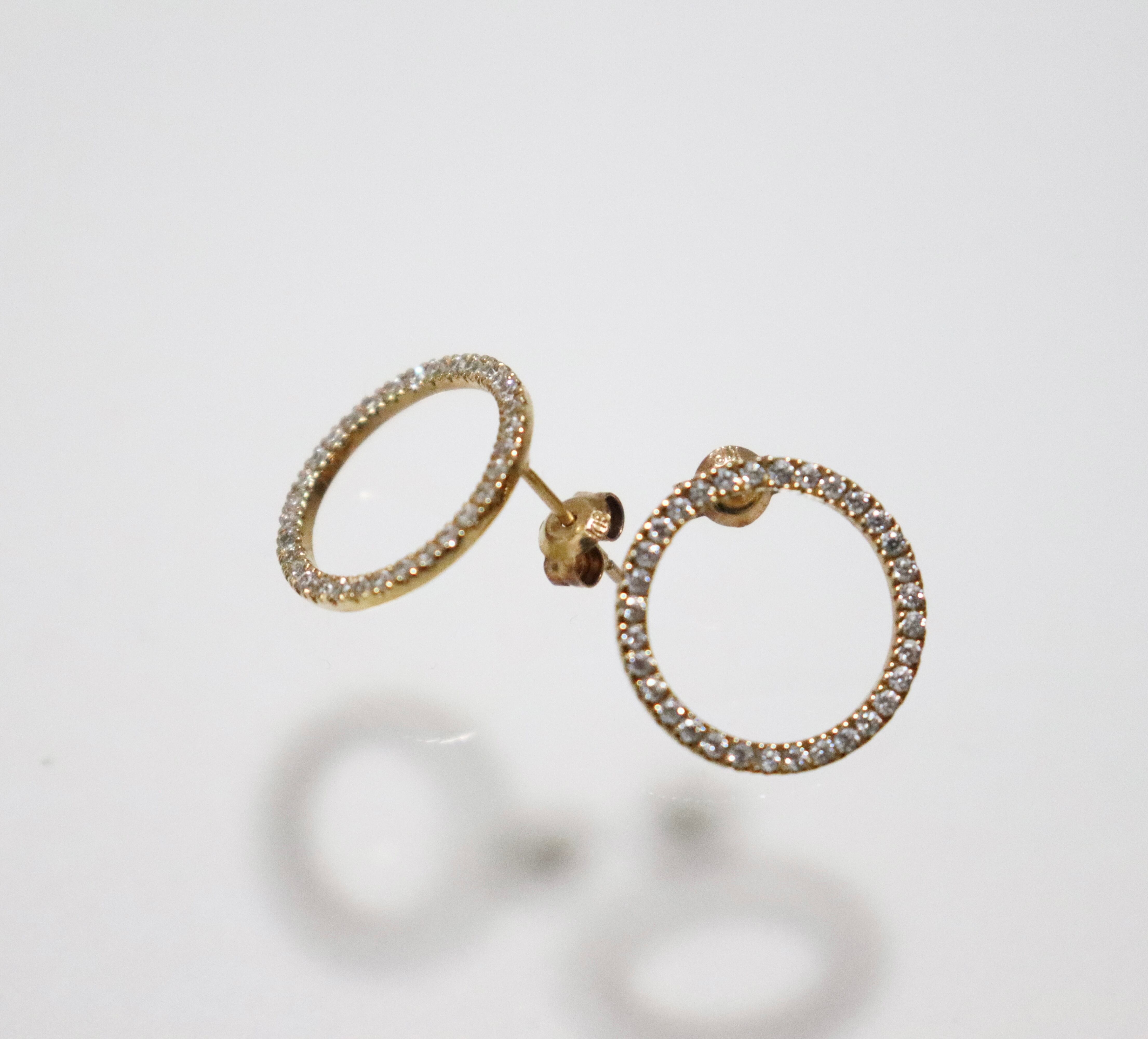 サークルのシンプルな形はどのスタイルにも合わせやすく、ダイヤモンドがサークルの全体に着いているので、正面から光を反射し、顔を明るくさせます。